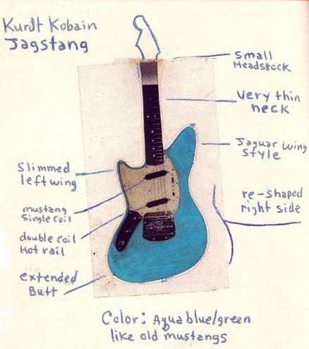 Cobain sketched a basic design that was sent to Fender, which was later published as part of his Journals in 2002.